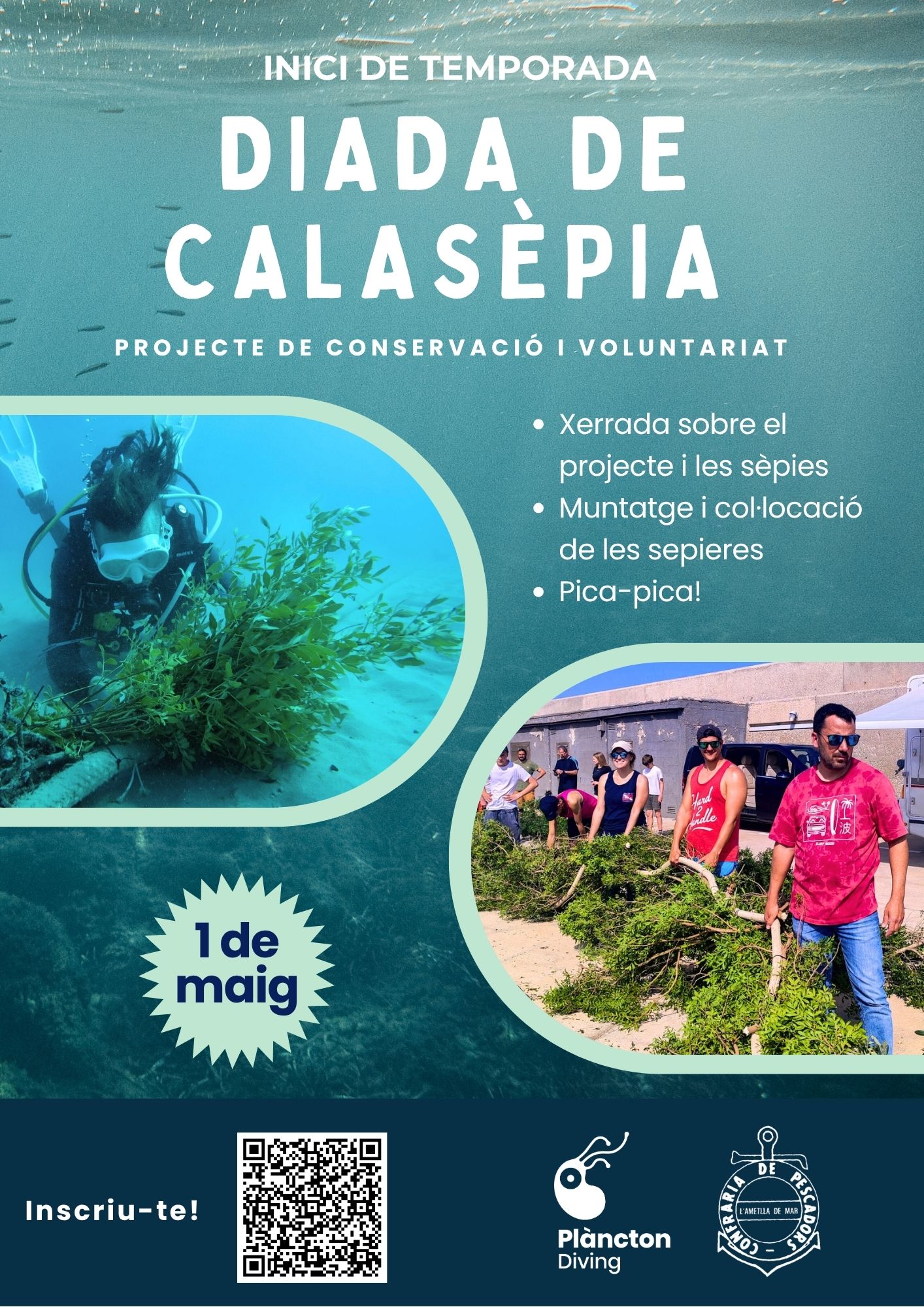 Aquest és el 4t any consecutiu que col·loquem les sepieres, una instal·lació per ajudar a les sèpies i calamars ha depositar els seus ous. A més, durant els mesos que està al mar, serveix com a biòtop per a moltes altres espècies i de zona d’alevinatge.